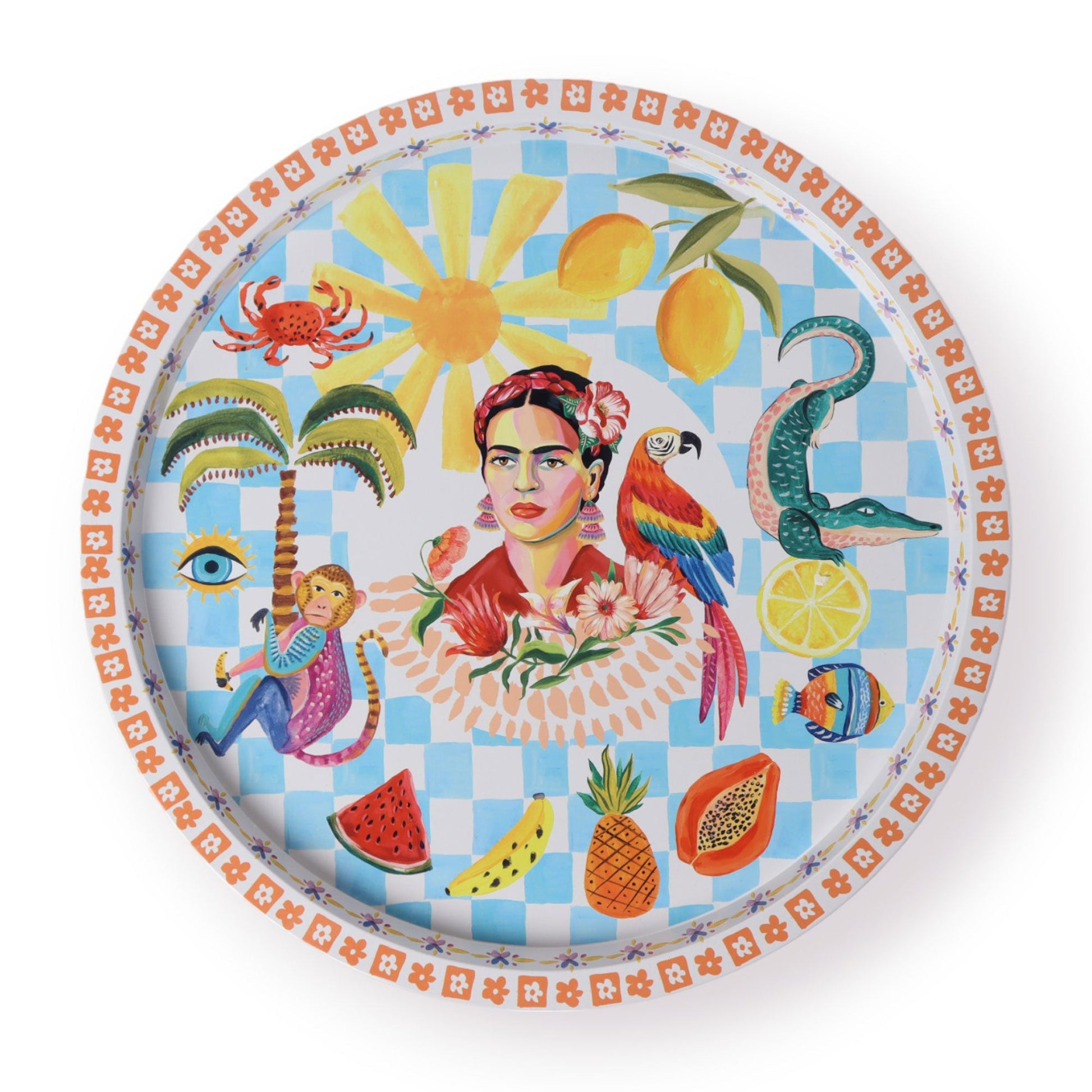 Illustrated rounded tin serving tray