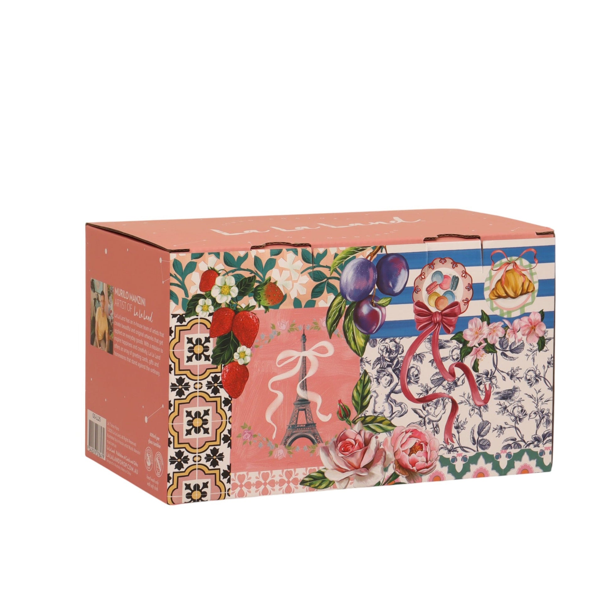 Each tumbler is a work of art in itself. The delicate glassware is adorned with Murilo Manzini's captivating illustrations, depicting blue filigree elements, ribbons, florals and sweet treats. The meticulous attention to detail, combined with the addition of shimmering gold foil accents, creates a truly enchanting set of glasses.
